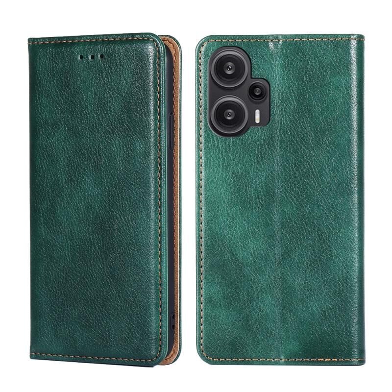 Για Xiaomi Redmi Note 12 Turbo Gloss Oil Solid Color Μαγνητική δερμάτινη θήκη τηλεφώνου (πράσινο)