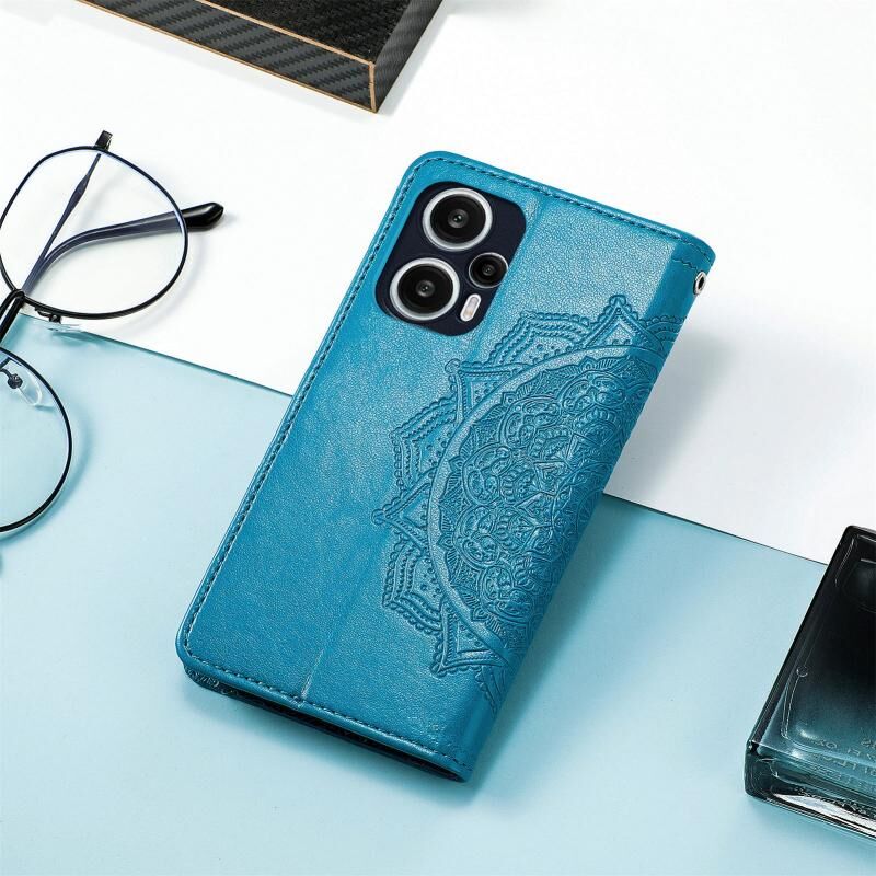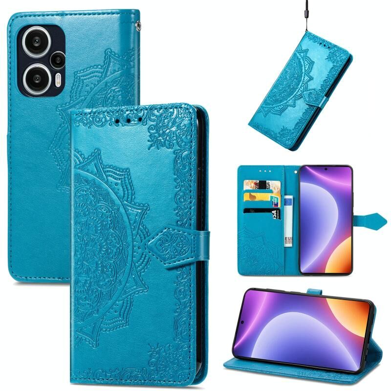Για Xiaomi Redmi Σημείωση 12 Turbo Mandala λουλούδι ανάγλυφο δέρμα τηλέφωνο υπόθεση (μπλε)