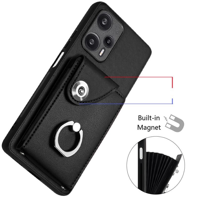 Για Xiaomi Redmi Σημείωση 12 Turbo Οργάνων κάρτα τσάντα δαχτυλίδι κάτοχος υπόθεση τηλεφώνου με μακρύ κορδόνι (μαύρο)
