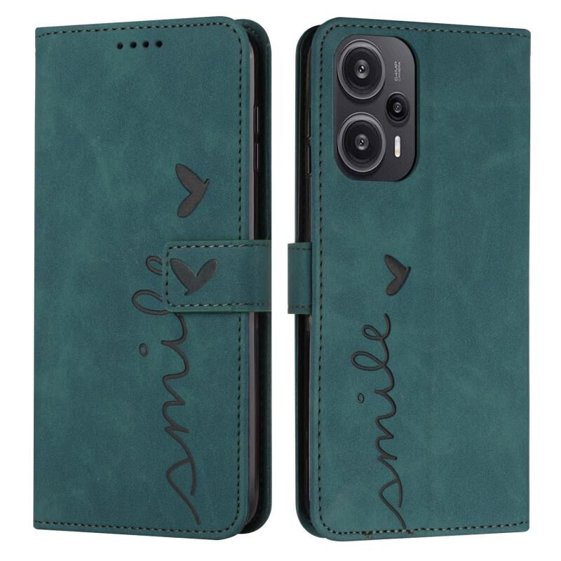 Για Xiaomi Redmi Note 12 Turbo / Poco F5 δέρμα αίσθηση καρδιά μοτίβο δερμάτινη θήκη τηλεφώνου (πράσινο)
