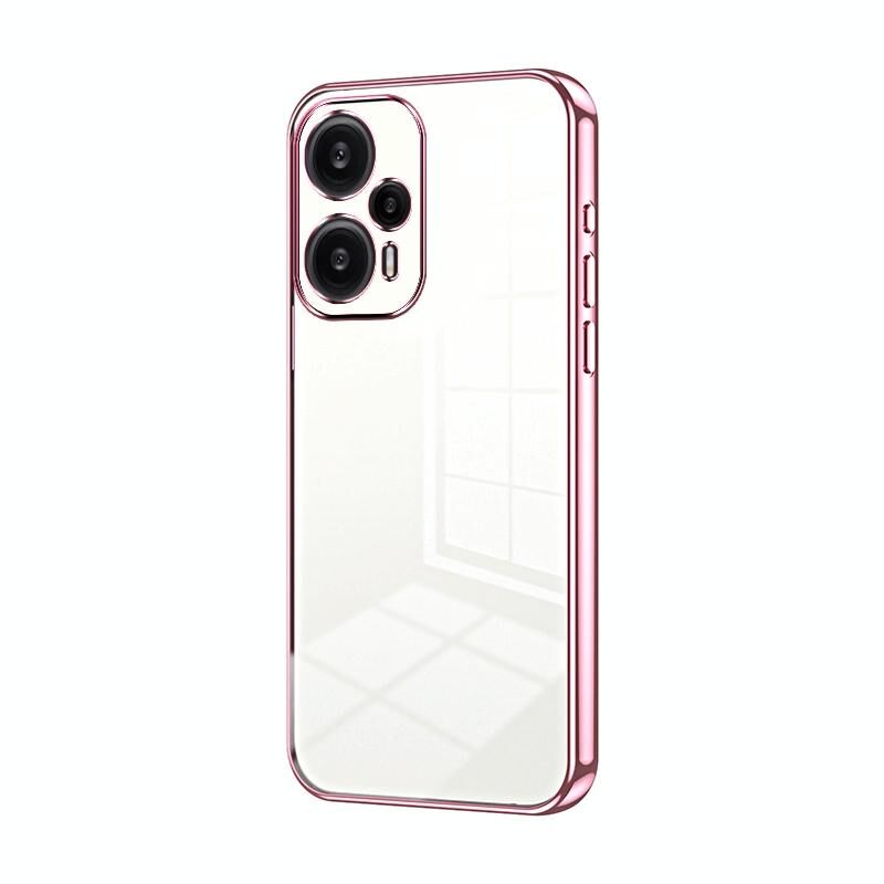 Για Xiaomi Redmi Note 12 Turbo / Poco F5 Διαφανής επιμετάλλωση Fine Hole τηλέφωνο υπόθεση (ροζ)