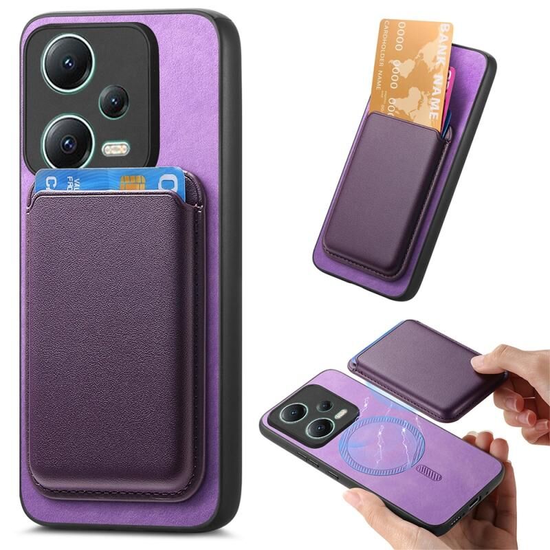 Για Xiaomi Redmi Note 12 Turbo Retro Θήκη Κάρτας Magsafe PU Κάλυμμα Πλάτης για Κινητό (Μωβ)