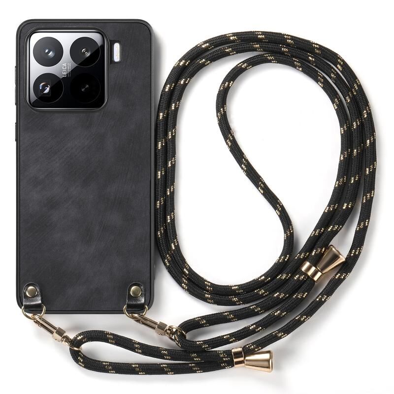 Για Xiaomi Redmi Note 12 Turbo Vintage δέρμα PC πίσω κάλυψη τηλέφωνο υπόθεση με λουράκι σταυρού (μαύρο)