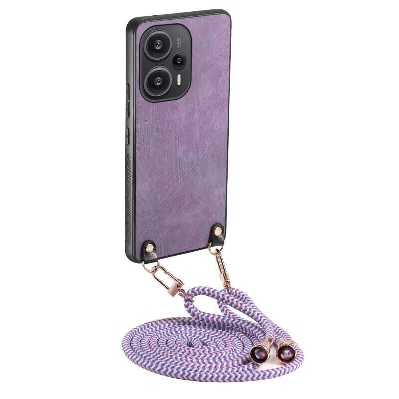 Για Xiaomi Redmi Note 12 Turbo Vintage δέρμα PC πίσω κάλυψη υπόθεση τηλεφώνου με λουράκι σταυρού (Μωβ)