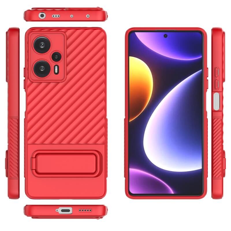 Για Xiaomi Redmi Σημείωση 12 Turbo κυματιστή υφή TPU τηλέφωνο υπόθεση με φιλμ φακού (κόκκινο)
