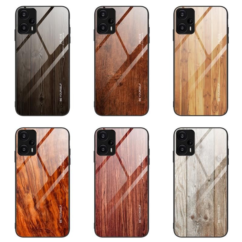 Για Xiaomi Redmi Note 12 Turbo Wood Grain Glass TPU τηλέφωνο υπόθεση (Γκρι)