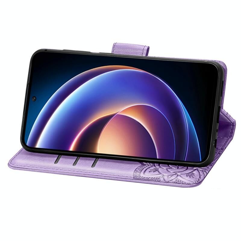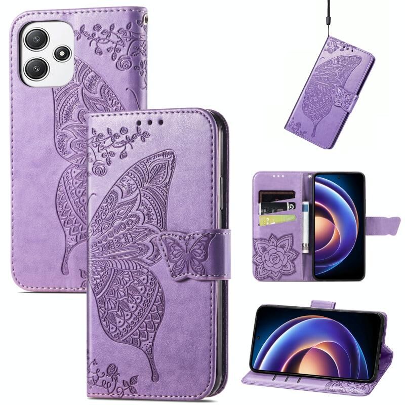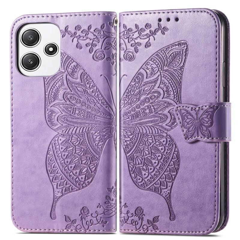 Θήκη τηλεφώνου δερμάτινη ανάγλυφη με λουλούδια και σχέδιο πεταλούδας για Xiaomi Redmi Note 12R (Λεβάντα)