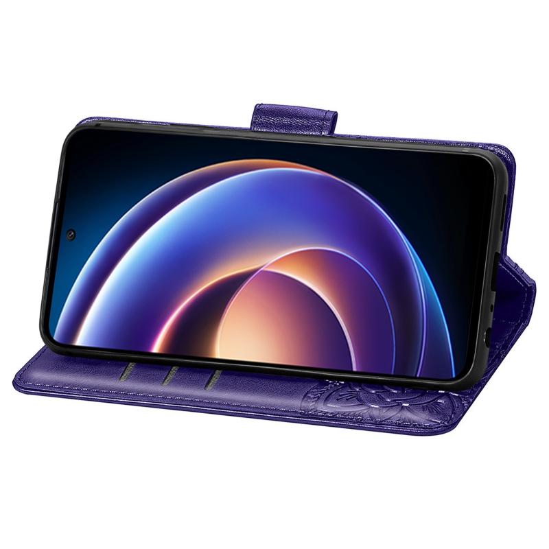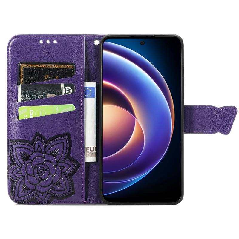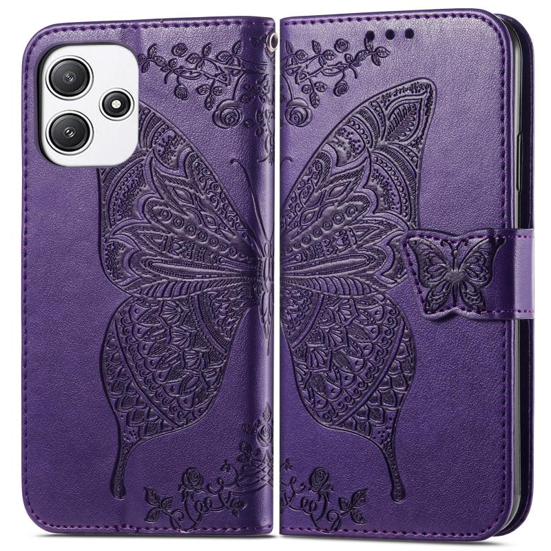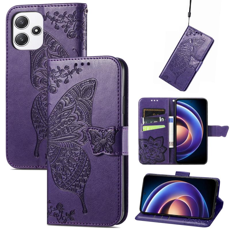Θήκη τηλεφώνου δερμάτινη ανάγλυφη με λουλούδια και σχέδιο πεταλούδας για Xiaomi Redmi Note 12R (Χρυσό ροζ)