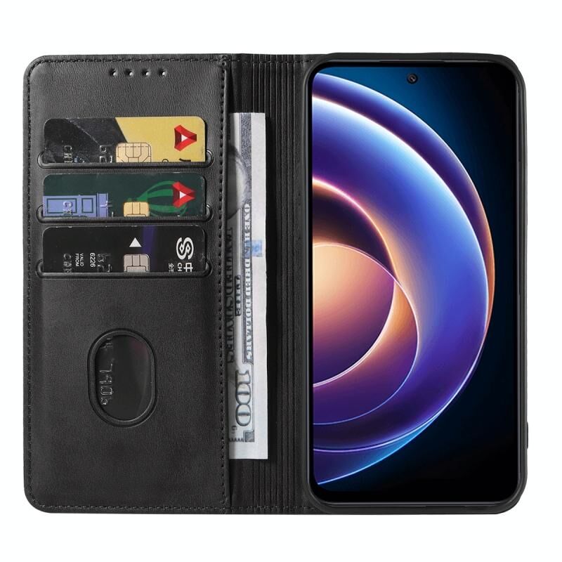 Για Xiaomi Redmi Note 12R Μαγνητικό κλείσιμο δερμάτινη θήκη τηλεφώνου (μαύρο)