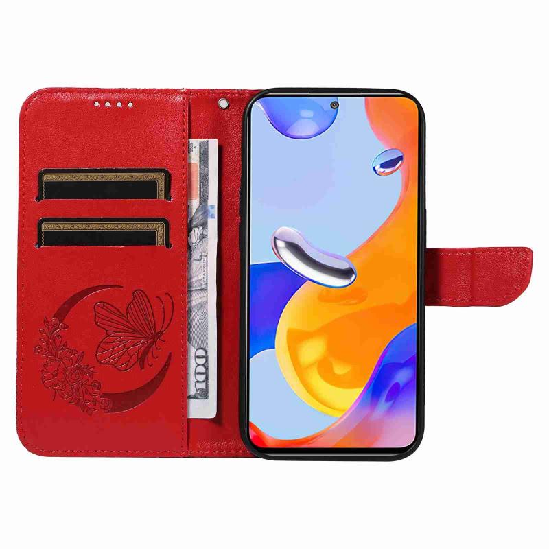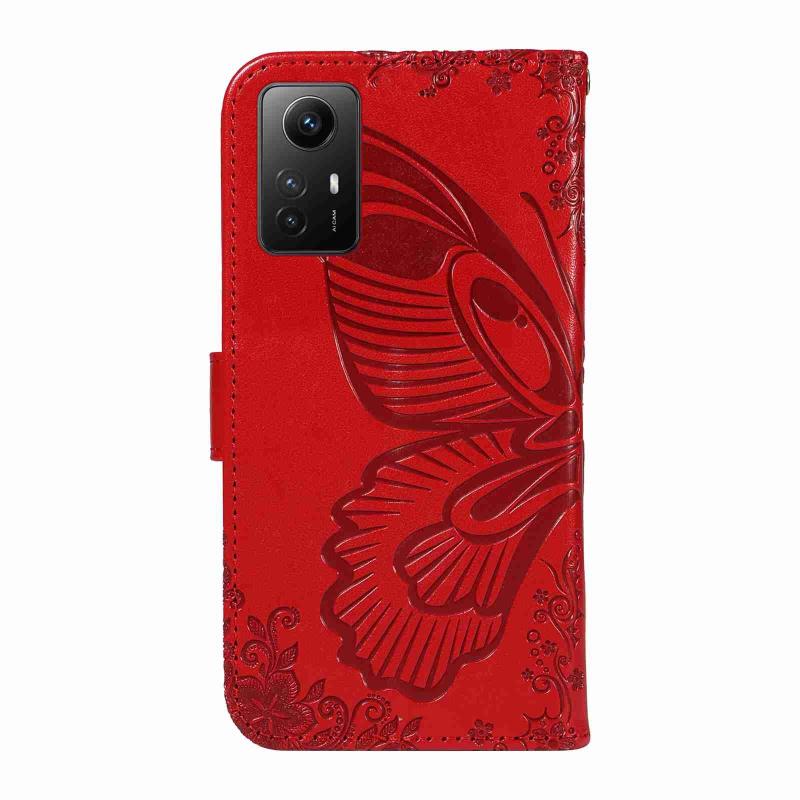 Θήκη τηλεφώνου από δέρμα με ανάγλυφο σχέδιο πεταλούδας Swallowtail για Xiaomi Redmi Note 12S 4G / 11 / 11S (Μπλε)