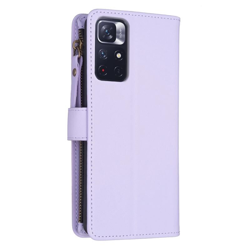 Για Xiaomi Redmi Σημείωση 12S 4G 9 υποδοχές καρτών φερμουάρ πορτοφόλι δέρμα Flip υπόθεση τηλεφώνου (Light Purple)