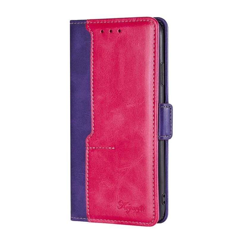 Για Xiaomi Redmi Σημείωση 12S 4G αντίθεση χρώμα πλευρά πόρπη δερμάτινη θήκη τηλεφώνου (Μωβ + Ροζένιο Κόκκινο)