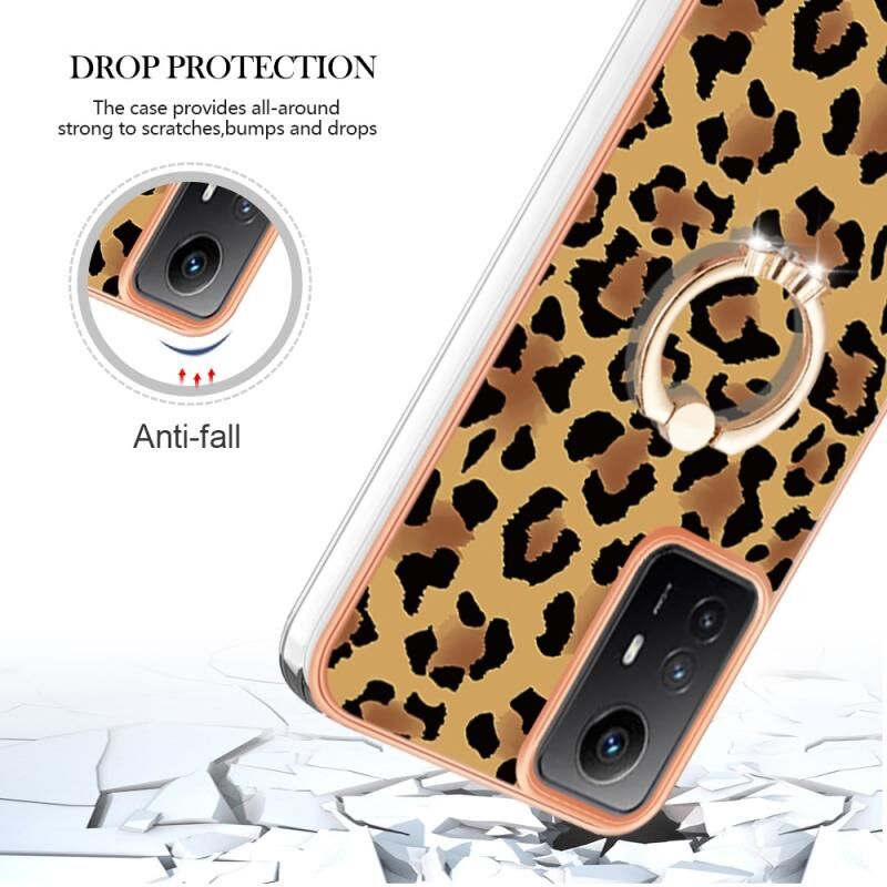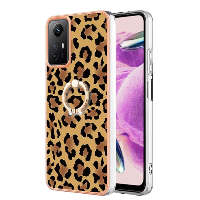 For Xiaomi Redmi Note 12S 4G Electroplating Dual-side IMD Phone Case with Ring Holder(Leopard Print)