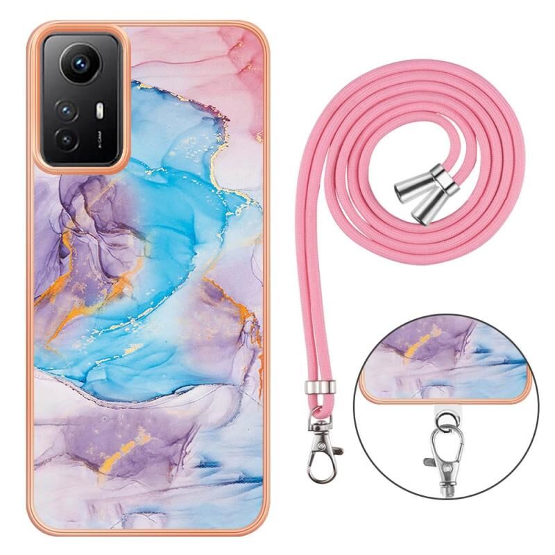 Θήκη τηλεφώνου για Xiaomi Redmi Note 12S 4G με επιμετάλλωση IMD TPU με κορδόνι (Ροζ Λέπια)