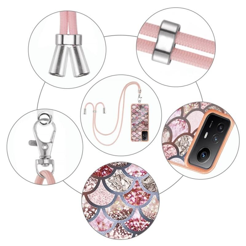 Θήκη τηλεφώνου για Xiaomi Redmi Note 12S 4G με επιμετάλλωση IMD TPU με κορδόνι (Ροζ Λέπια)