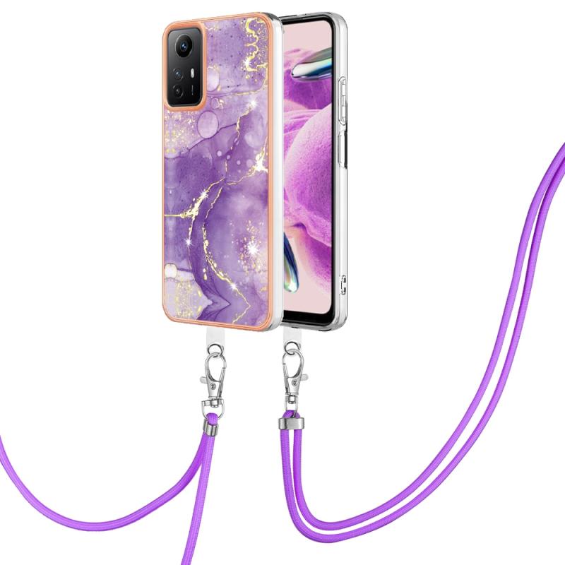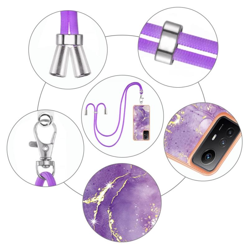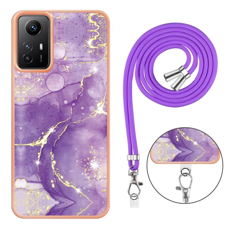 For Xiaomi Redmi Note 12S 4G Electroplating Marble Dual-side IMD Phone Case with Lanyard(Purple 002)