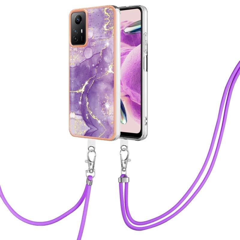 Θήκη τηλεφώνου για Xiaomi Redmi Note 12S 4G με ηλεκτρολυτική μαρμάρινη επένδυση IMD διπλής όψης με κορδόνι (Μωβ 002)