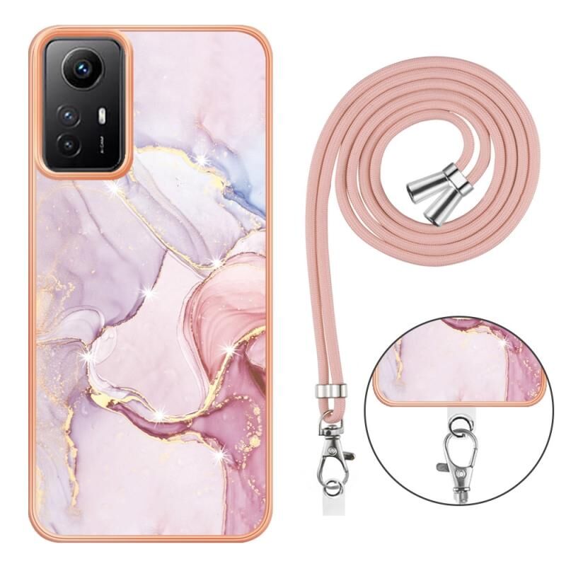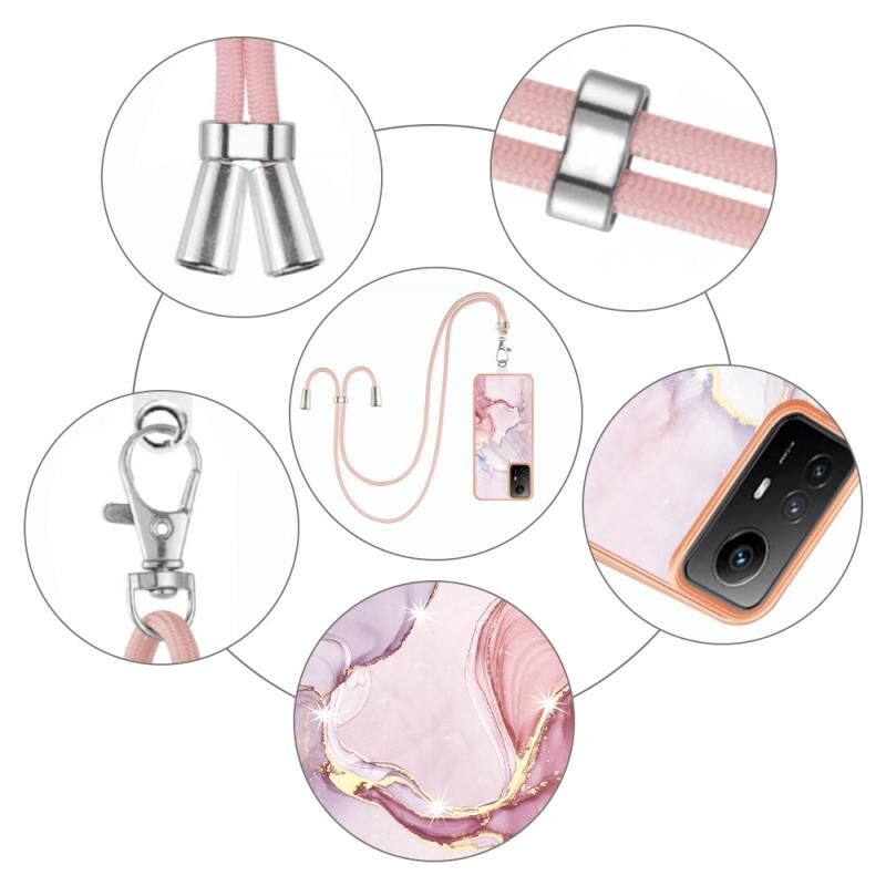 Θήκη τηλεφώνου για Xiaomi Redmi Note 12S 4G με ηλεκτρολυτική μαρμάρινη επένδυση IMD διπλής όψης με κορδόνι (Ροζ Χρυσός 005)