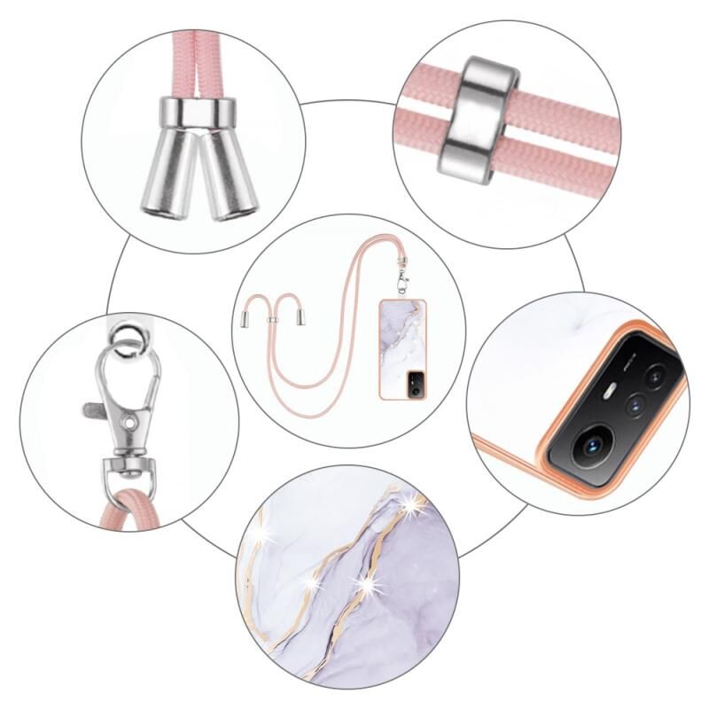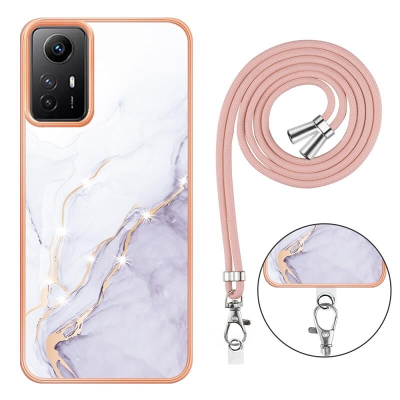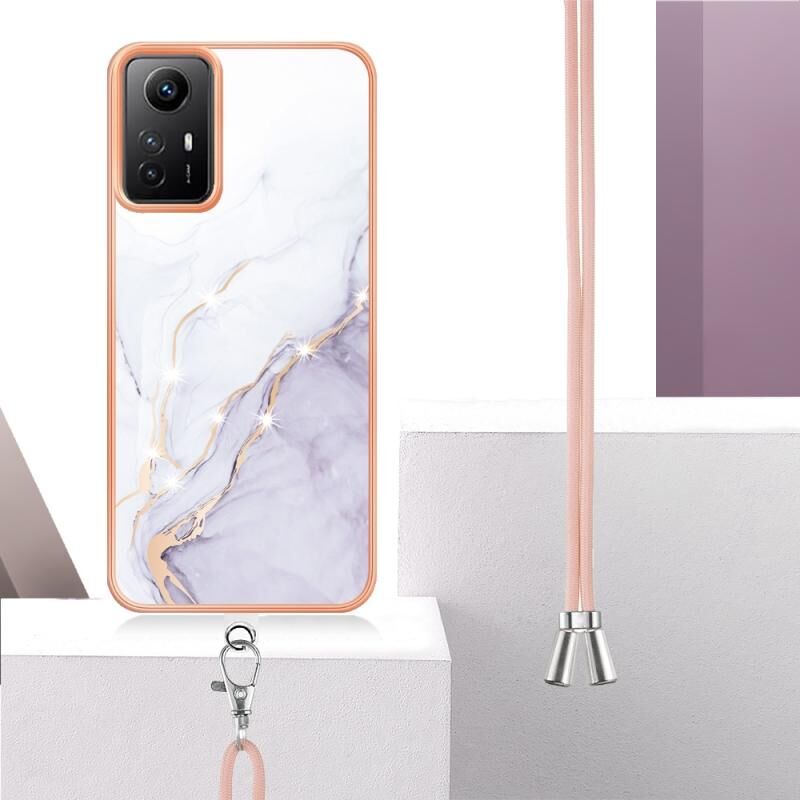 Θήκη τηλεφώνου για Xiaomi Redmi Note 12S 4G με ηλεκτρολυτική μαρμάρινη επένδυση IMD διπλής όψης με κορδόνι (Λευκό 006)
