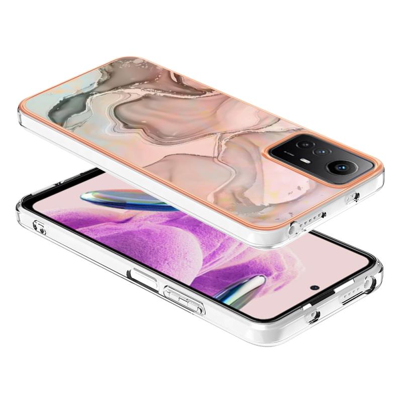 For Xiaomi Redmi Note 12S 4G Electroplating Marble Dual-side IMD TPU Phone Case(Rose Gold 015)
