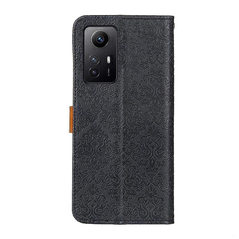 Για Xiaomi Redmi Note 12S 4G Ευρωπαϊκή Floral ανάγλυφη δερμάτινη θήκη τηλεφώνου (μαύρο)