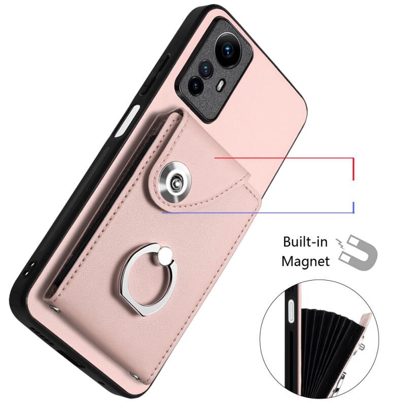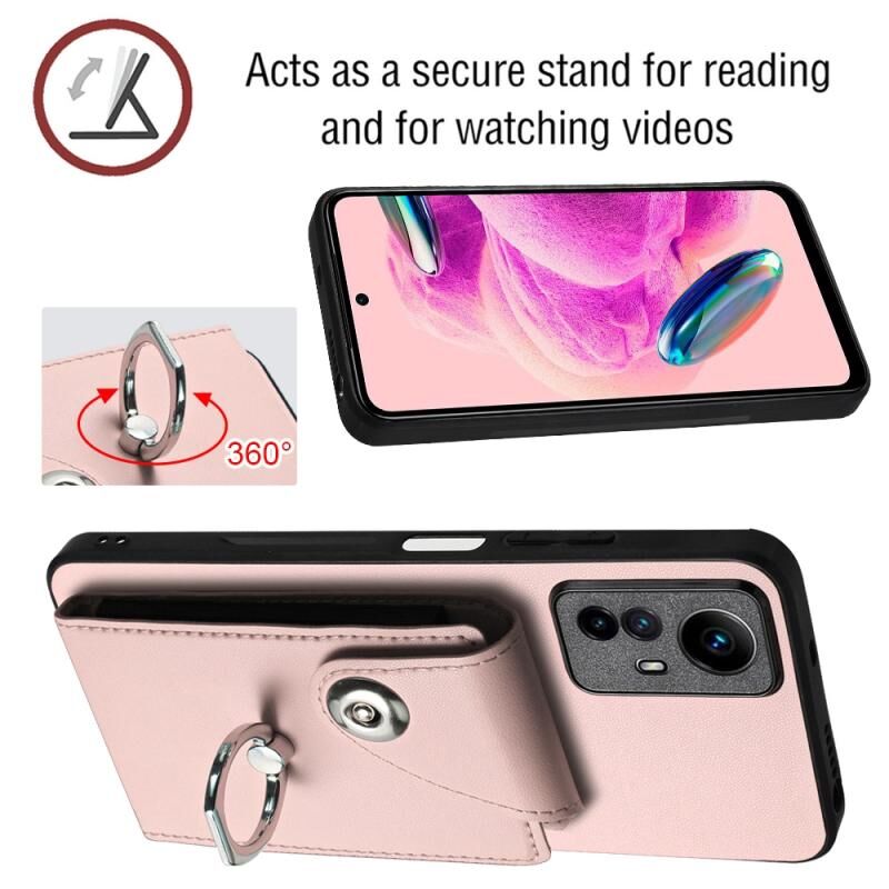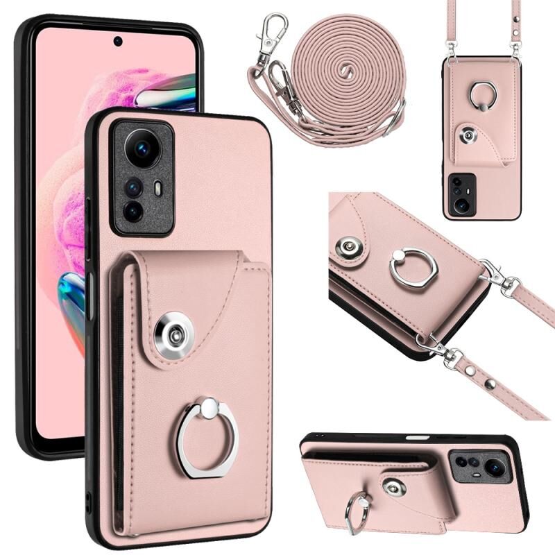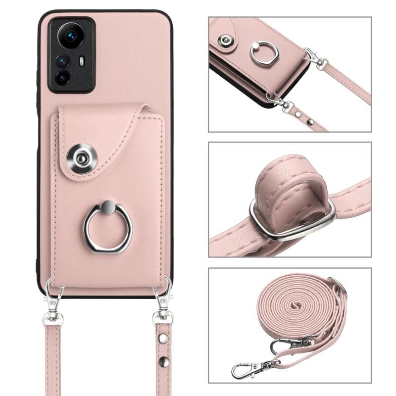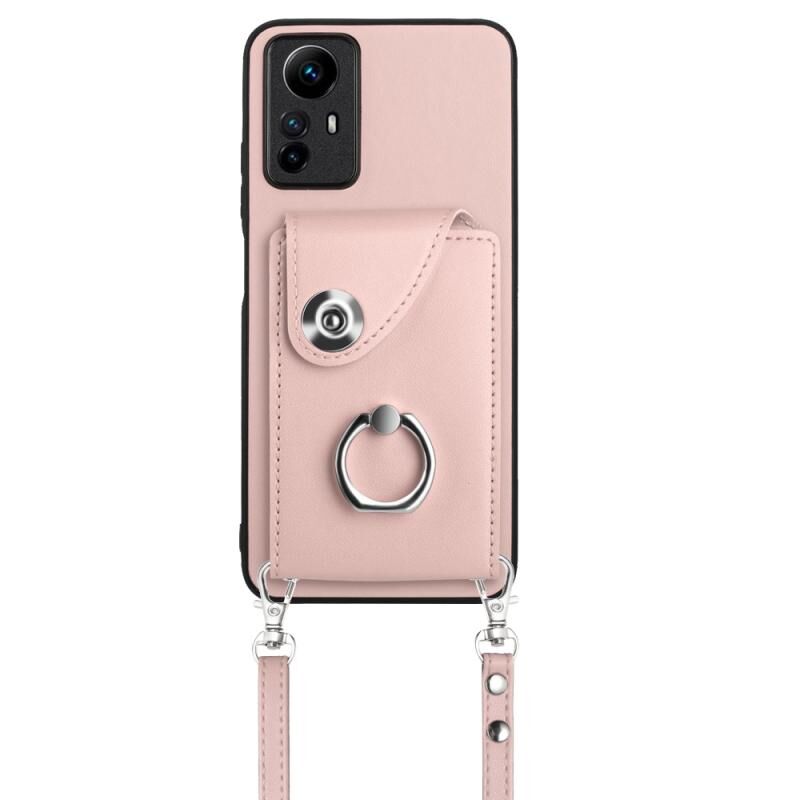 Για Xiaomi Redmi Σημείωση 12S 4G Παγκόσμια Οργανική κάρτα τσάντα τσάντα δαχτυλίδι κάτοχος τηλέφωνο υπόθεση με μακρύ κορδόνι (ροζ)