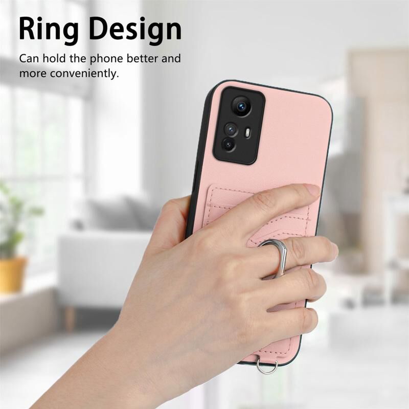 Για Xiaomi Redmi Note 12S 4G Global R20 Crossbody Rope Ring Card Holder τηλέφωνο υπόθεση (ροζ)