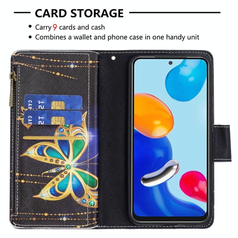 Για Xiaomi Redmi Note 12S 4G / Note 11 Θήκη Τηλεφώνου Δερμάτινη με Φερμουάρ και Πολύχρωμο Σχέδιο (Μωβ Πεταλούδα)
