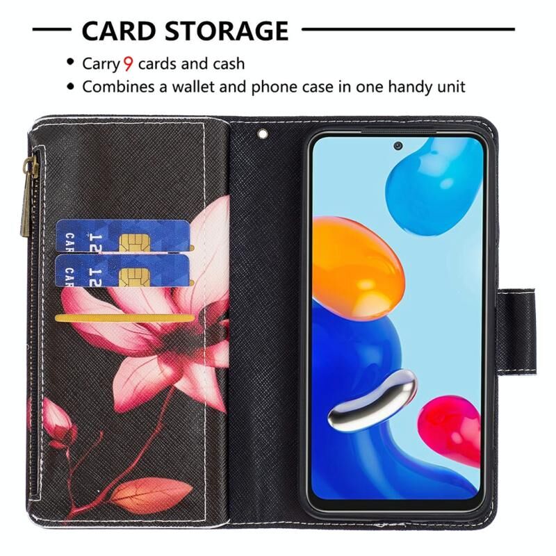 Θήκη τηλεφώνου από δέρμα με φερμουάρ και πολύχρωμο σχέδιο για Xiaomi Redmi Note 12S 4G / Note 11 (Λωτός)
