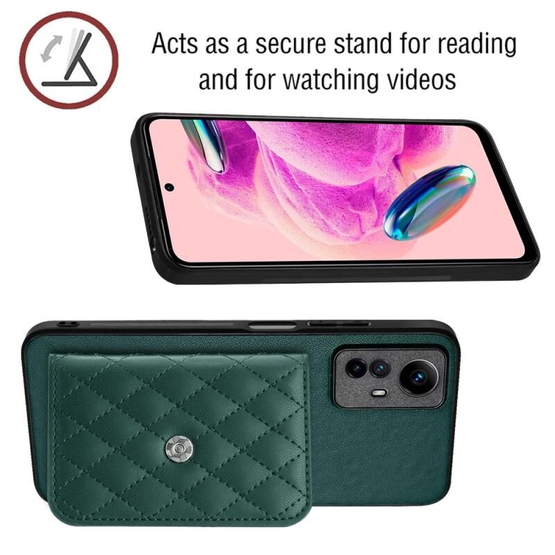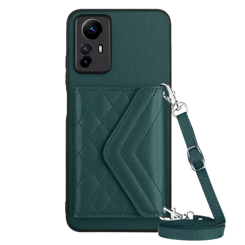 Για Xiaomi Redmi Σημείωση 12S 4G Rhombic υφή κάρτα τσάντα RFID υπόθεση τηλεφώνου με μακρύ κορδόνι (Πράσινο)