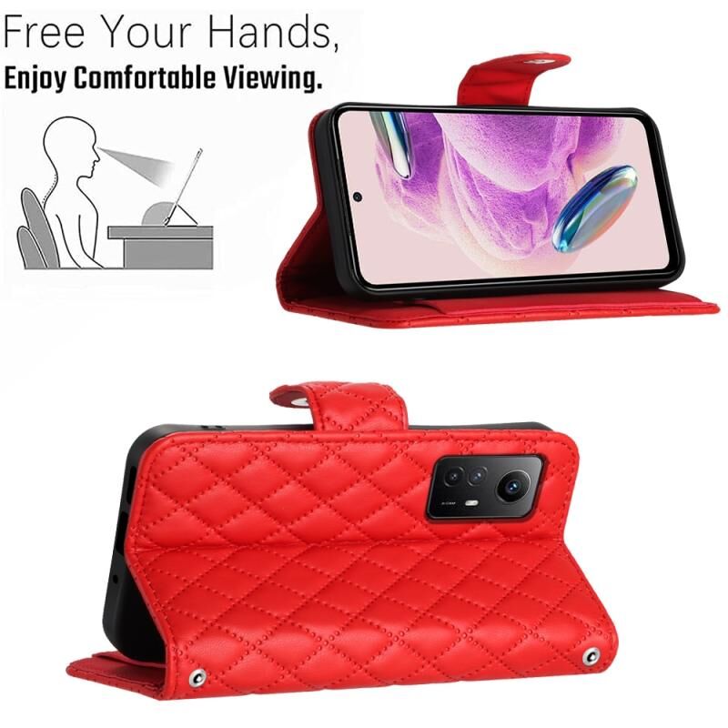 Για Xiaomi Redmi Note 12S 4G Rhombic Texture Flip δερμάτινη θήκη τηλεφώνου με κορδόνι (κόκκινο)