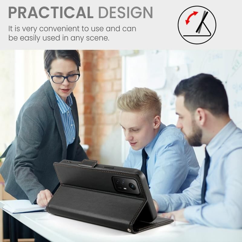 Για Xiaomi Redmi Σημείωση 12S 4G πλευρά πόρπη μαγνητική παγωμένο δέρμα τηλέφωνο υπόθεση (μαύρο)