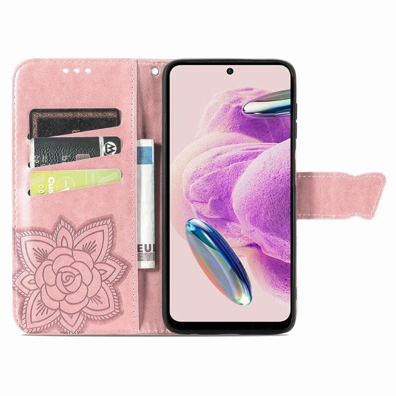 Θήκη τηλεφώνου δερμάτινη ανάγλυφη με σχέδιο πεταλούδας και λουλουδιών για Xiaomi Redmi Note 12S (Μπλε)