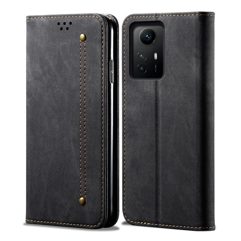 Για Xiaomi Redmi Note 12S Denim Texture Flip δερμάτινη θήκη τηλεφώνου (Μαύρο)