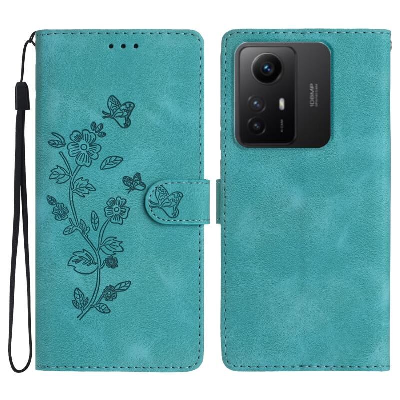 Για Xiaomi Redmi Σημείωση 12S λουλούδι πεταλούδα ανάγλυφο μοτίβο δερμάτινη θήκη τηλεφώνου (Sky Blue)