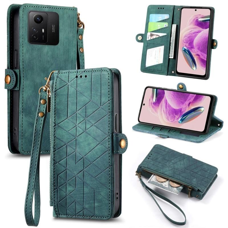 Για Xiaomi Redmi Σημείωση 12S γεωμετρική φερμουάρ πορτοφόλι πλευρά πόρπη δερμάτινη θήκη τηλεφώνου (πράσινο)