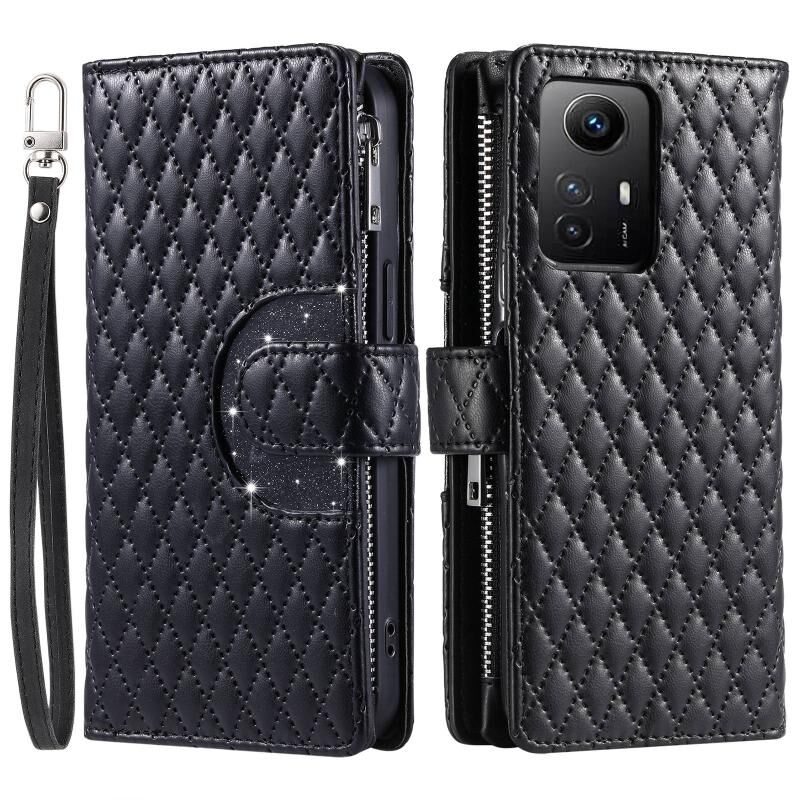 Για Xiaomi Redmi Note 12S Glitter Lattice φερμουάρ πορτοφόλι δερμάτινη θήκη τηλεφώνου (μαύρο)
