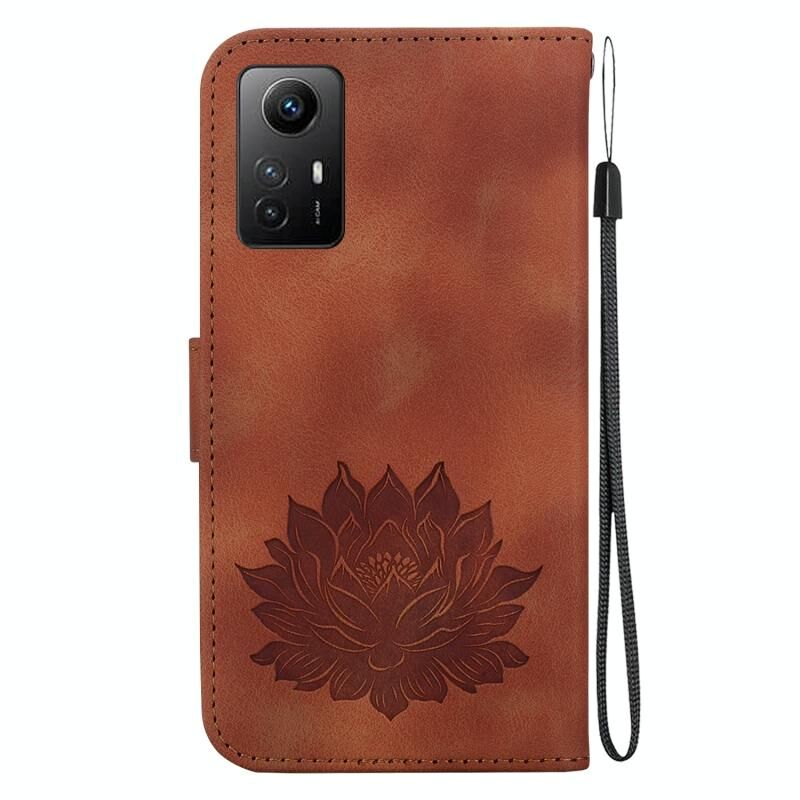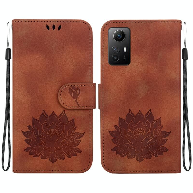 Για Xiaomi Redmi Note 12S Lotus ανάγλυφη δερμάτινη θήκη τηλεφώνου (Καφέ)