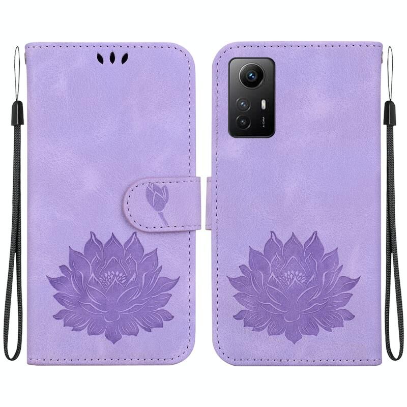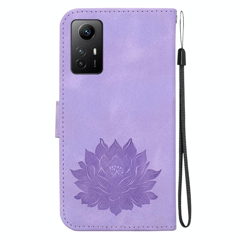 Για Xiaomi Redmi Note 12S Lotus ανάγλυφη δερμάτινη θήκη τηλεφώνου (Μωβ)