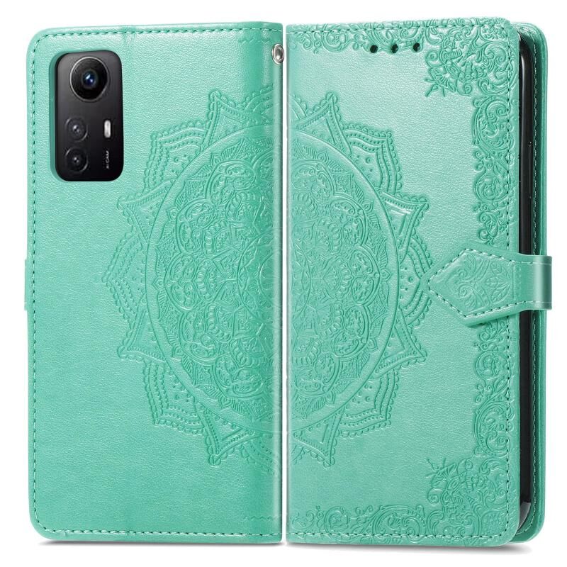 Για Xiaomi Redmi Σημείωση 12S Mandala λουλούδι ανάγλυφο δέρμα τηλέφωνο υπόθεση (πράσινο)