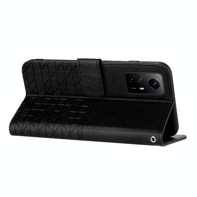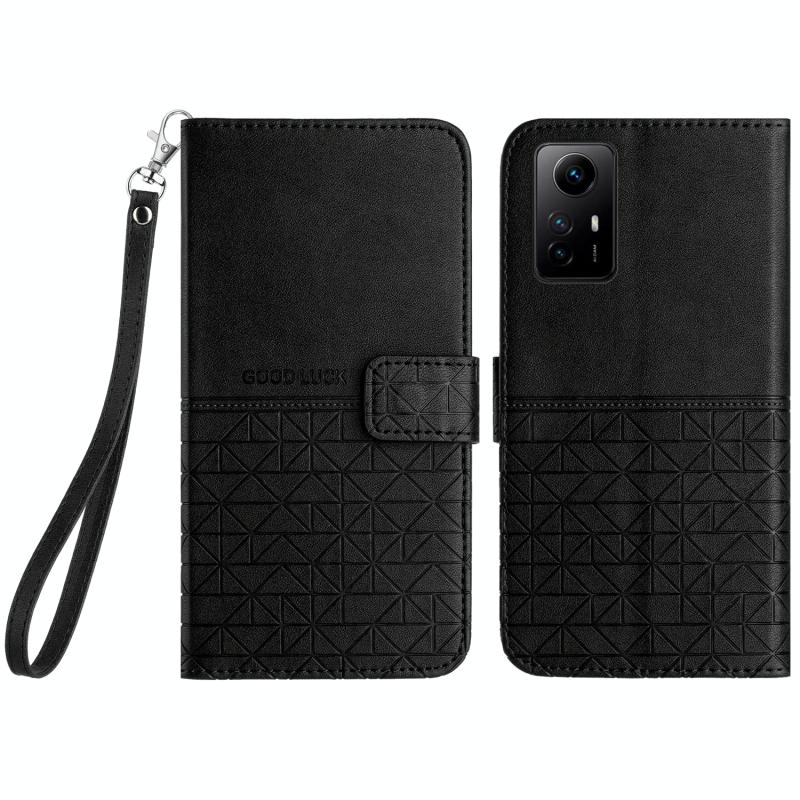 Θήκη δερμάτινη με κορδόνι για Xiaomi Redmi Note 12S με υφή ρόμβου (Μαύρο)