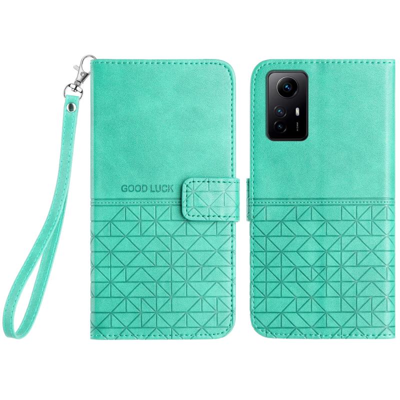 Θήκη δερμάτινη με κορδόνι για Xiaomi Redmi Note 12S με υφή ρόμβου (Πράσινο)