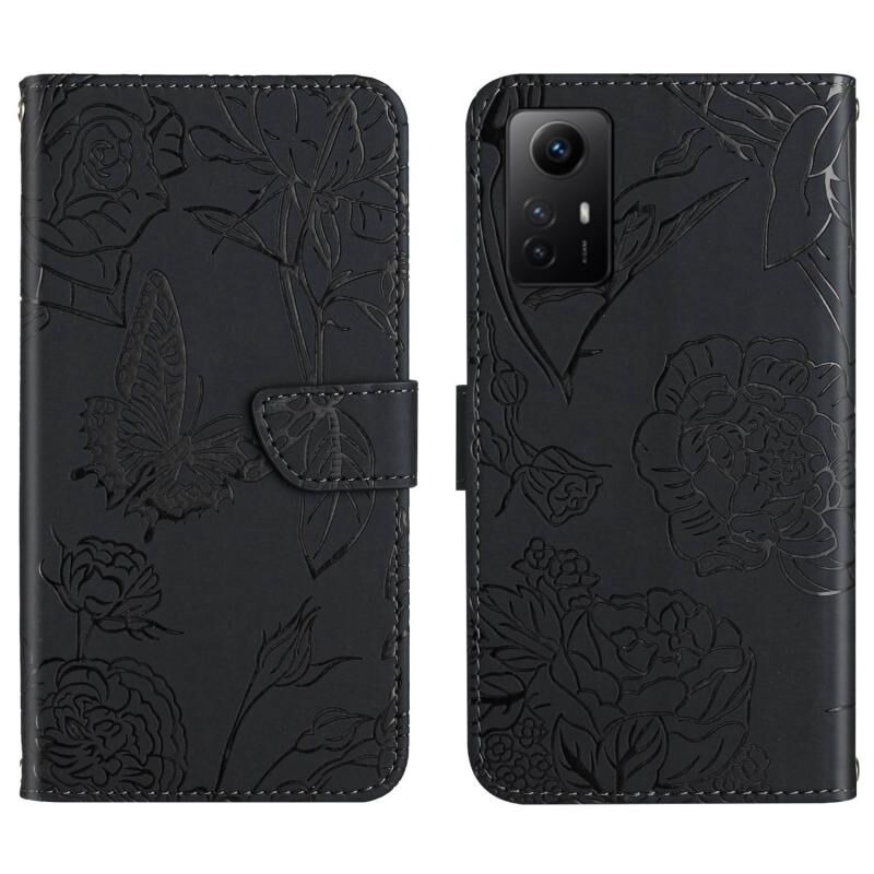 Για Xiaomi Redmi Σημείωση 12S δέρμα αίσθηση πεταλούδα ανάγλυφο Flip δέρμα τηλέφωνο υπόθεση (μαύρο)