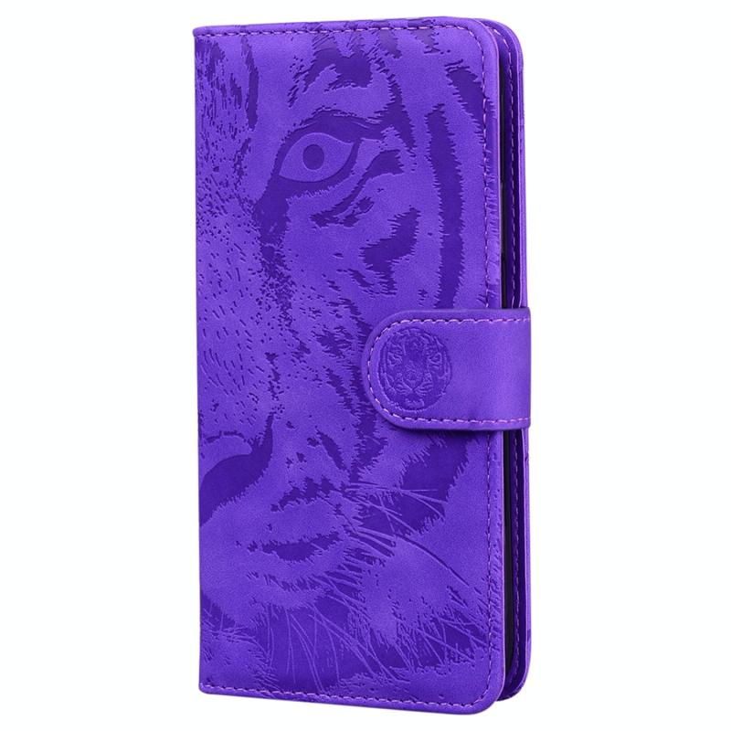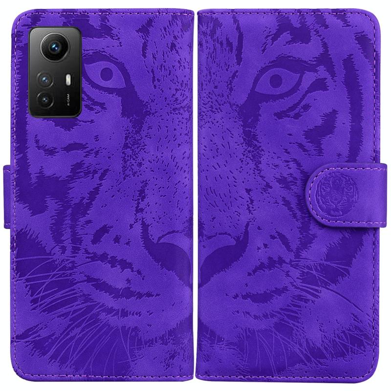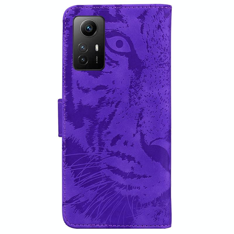 Θήκη δερμάτινη με ανάγλυφο σχέδιο τίγρης για Xiaomi Redmi Note 12S (Μωβ)