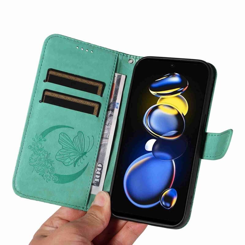 Θήκη τηλεφώνου από δέρμα με ανάγλυφο σχέδιο πεταλούδας για Xiaomi Redmi Note 12T Pro (Μπλε)