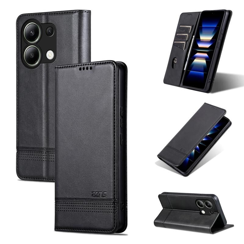 Για Xiaomi Redmi Note 13 4G AZNS Μαγνητικό μοσχάρι υφή Flip δέρμα τηλέφωνο υπόθεση (μαύρο) (AZNS)