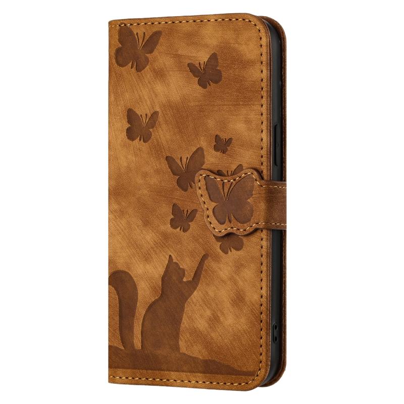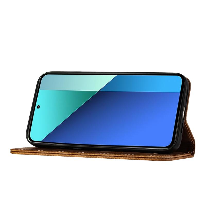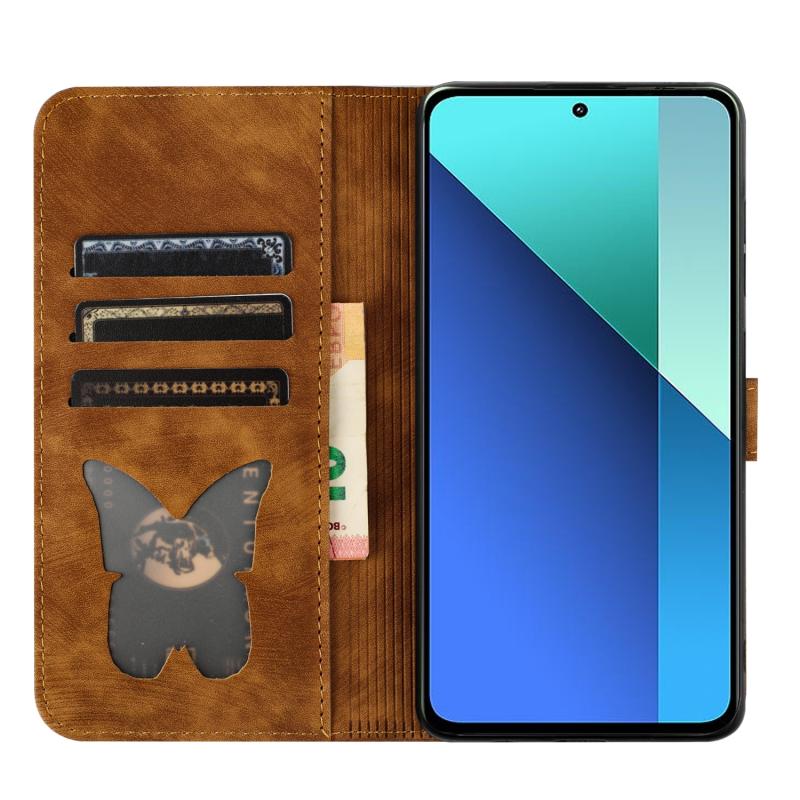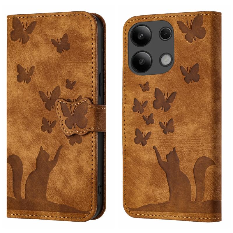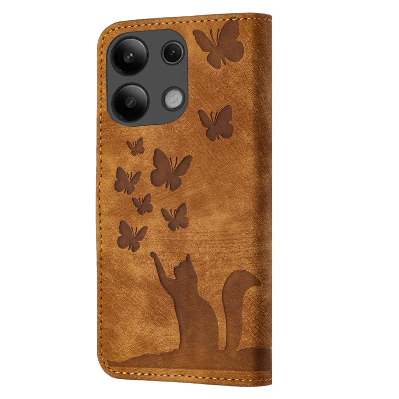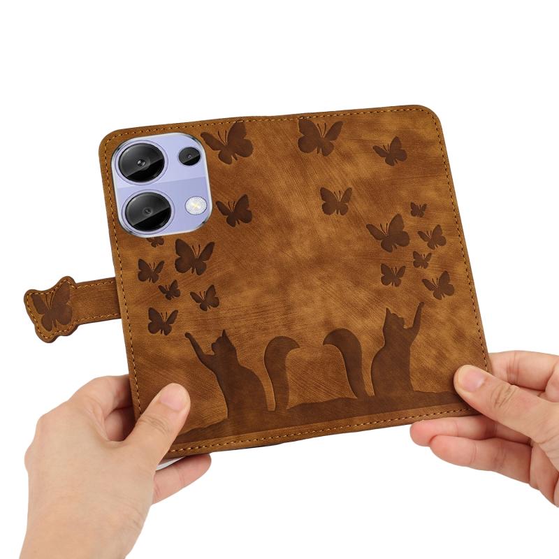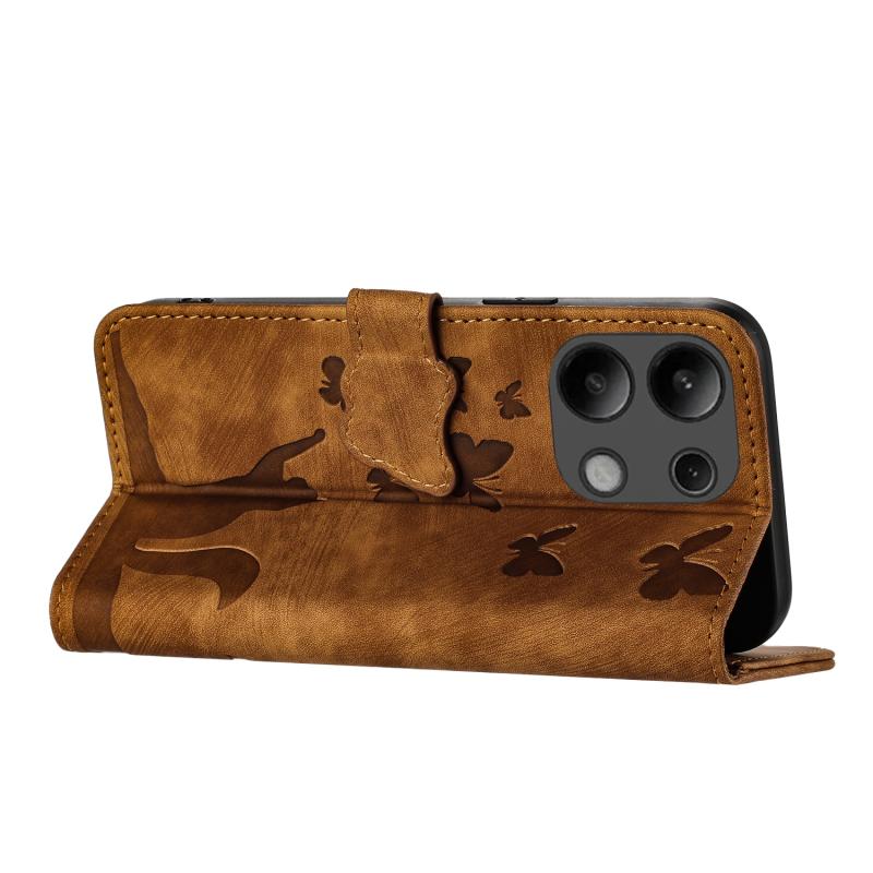 Για Xiaomi Redmi Note 13 4G Θήκη Δερμάτινη με ανάγλυφο σχέδιο γάτας - Flip (Καφέ)