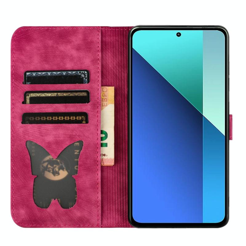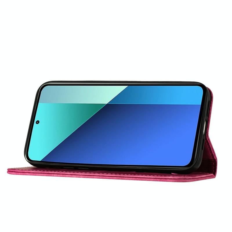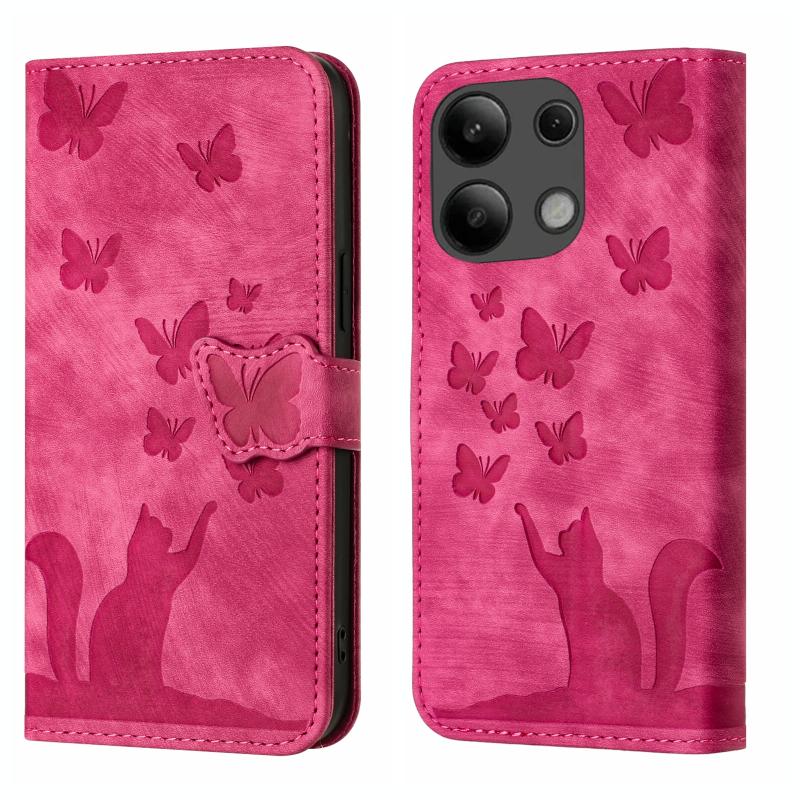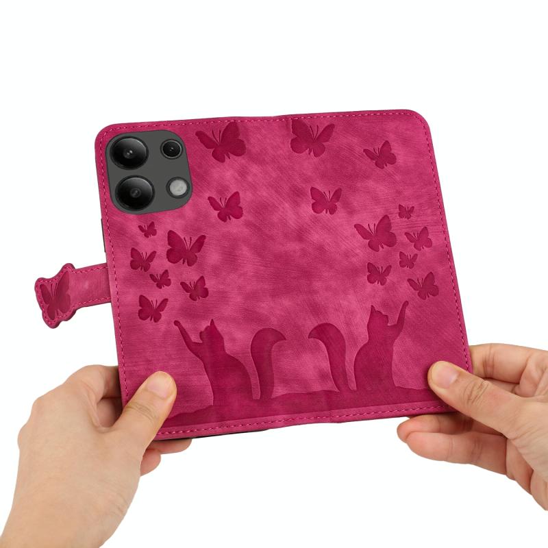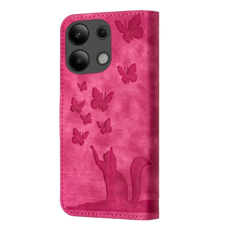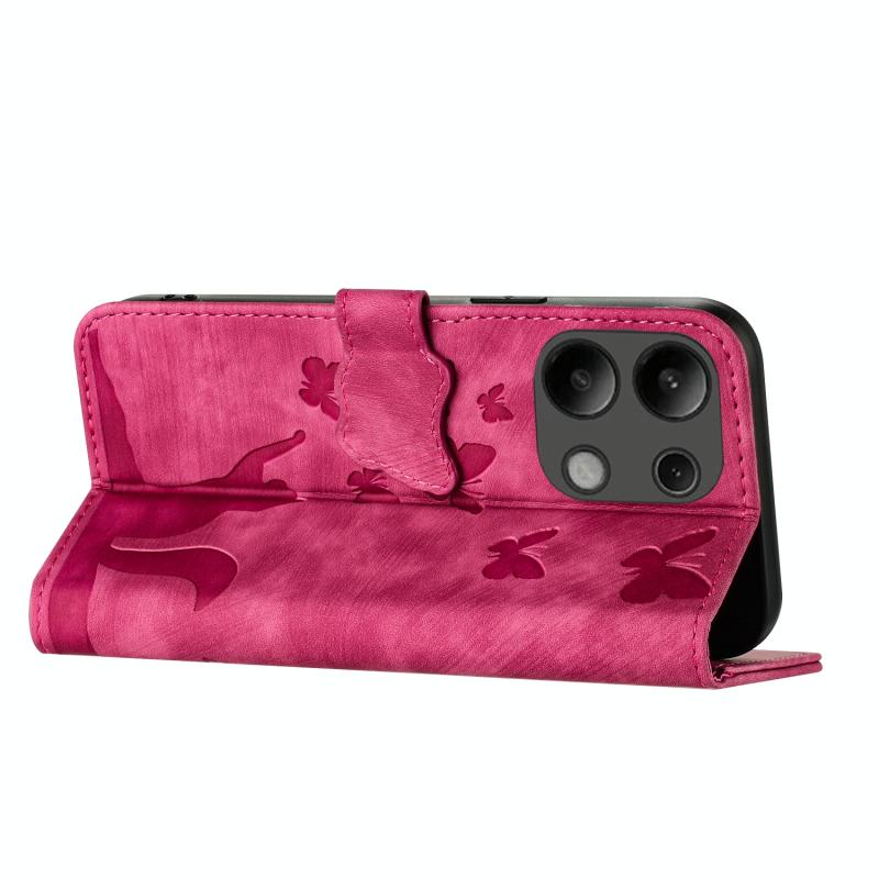 Για Xiaomi Redmi Note 13 4G Θήκη Δερμάτινη με ανάγλυφο σχέδιο γάτας - Flip (Ροζ)