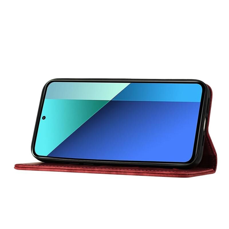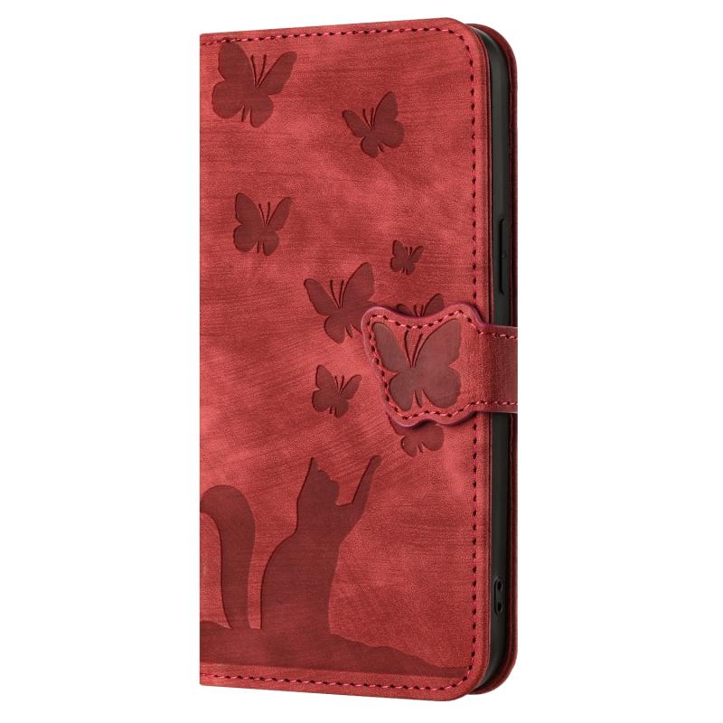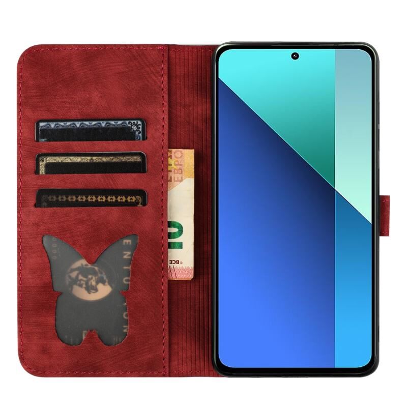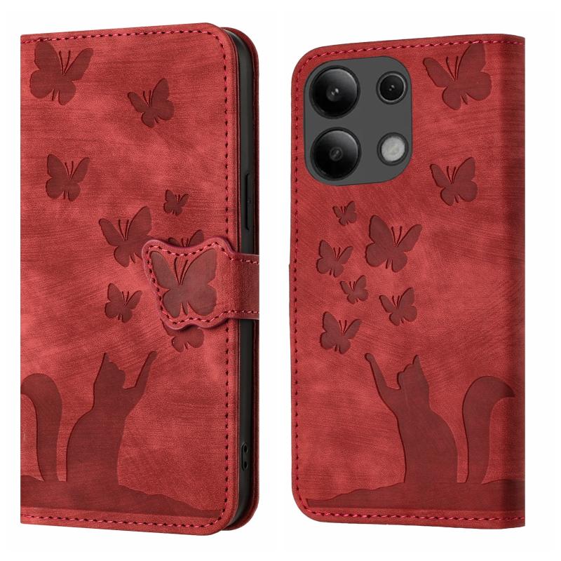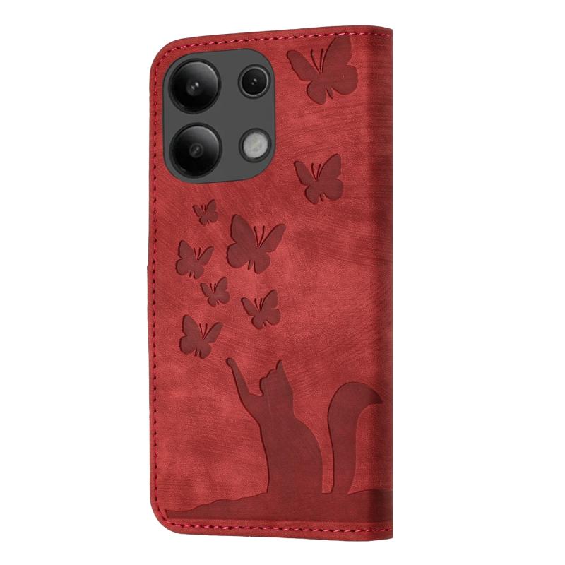 Για Xiaomi Redmi Note 13 4G Θήκη Δερμάτινη με ανάγλυφο σχέδιο γάτας - Flip (Κόκκινο)