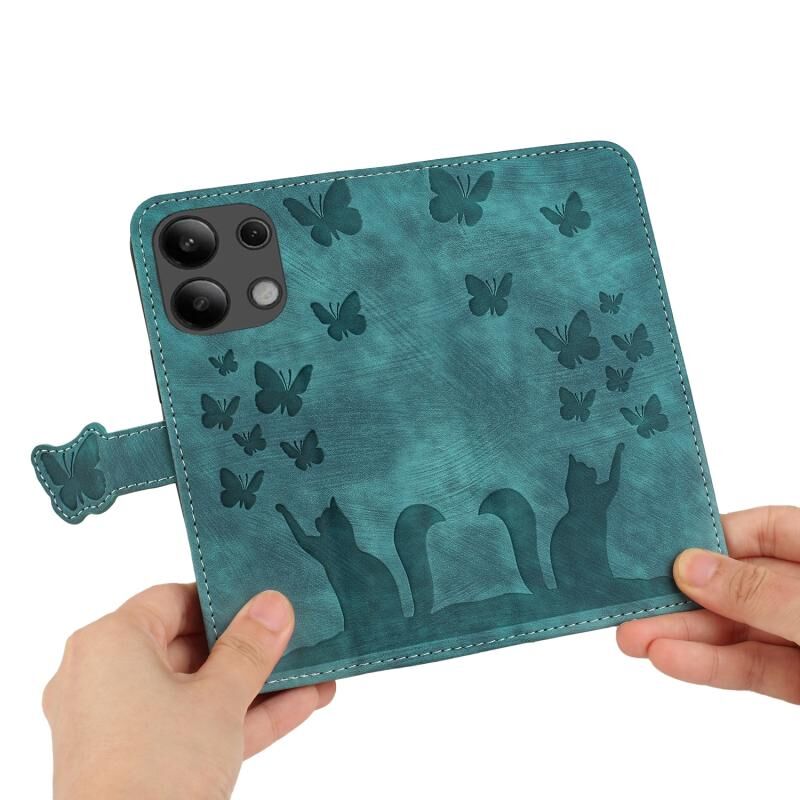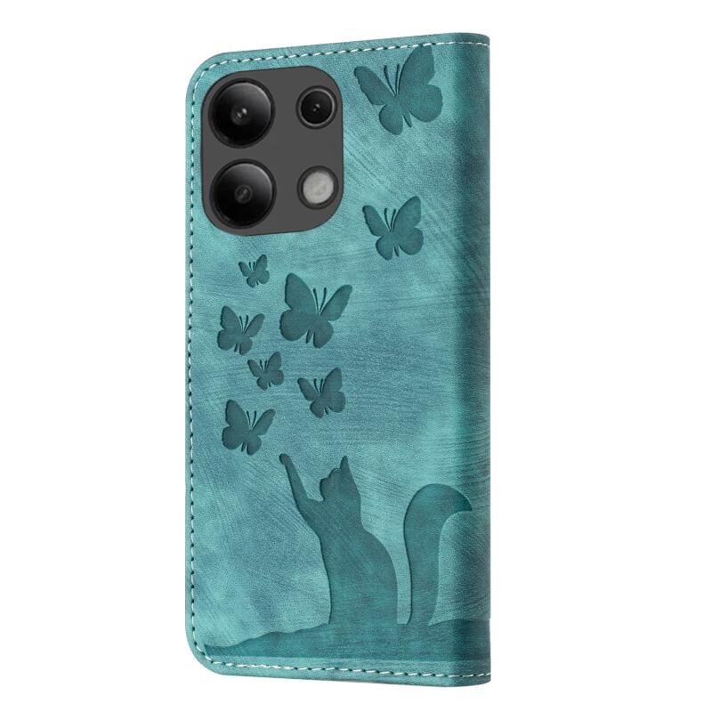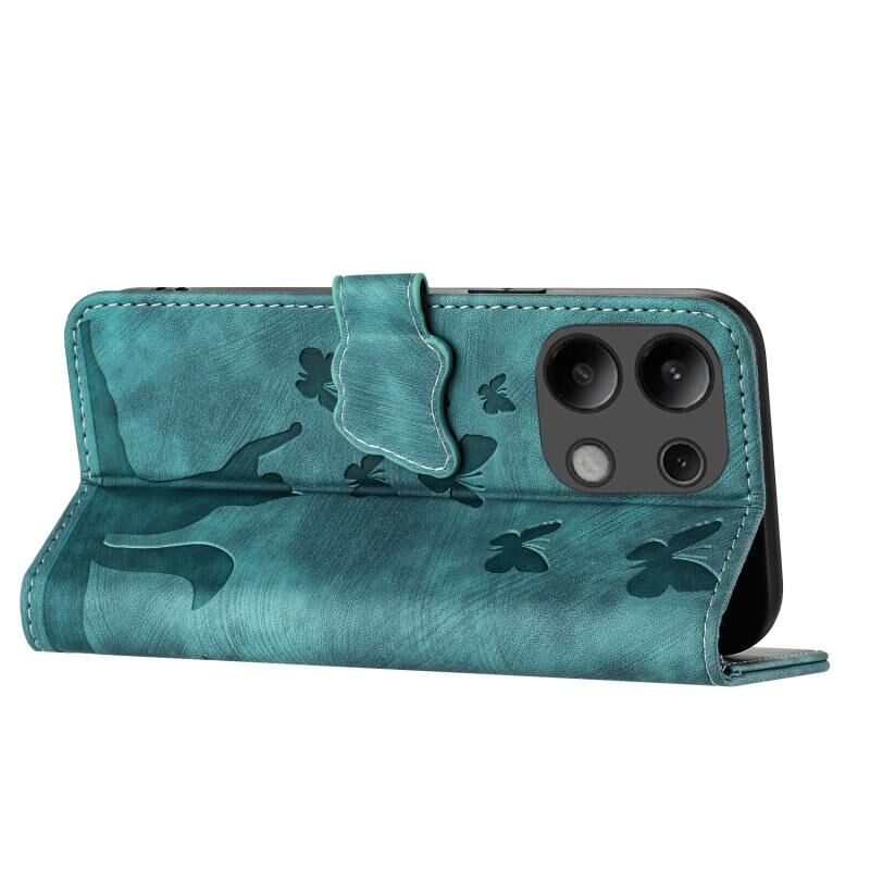 Θήκη δερμάτινη flip με ανάγλυφο σχέδιο γάτας για Xiaomi Redmi Note 13 4G (Wathet)